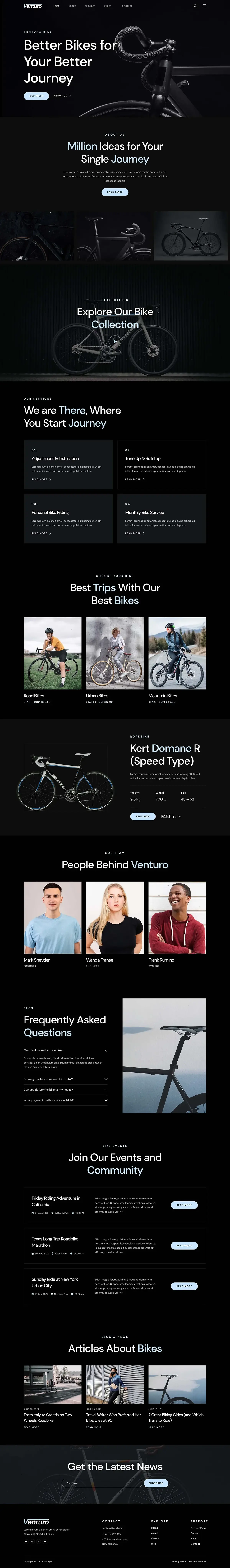 Venturo – 自行车租赁及服务 Elementor 模板套件 ,专为自行车店、自行车维修和自行车租赁服务制作。Venturo 设计简洁、现代且简洁,布局响应率 100%,非常易于定制,任何人都可以使用,无需理解编程。